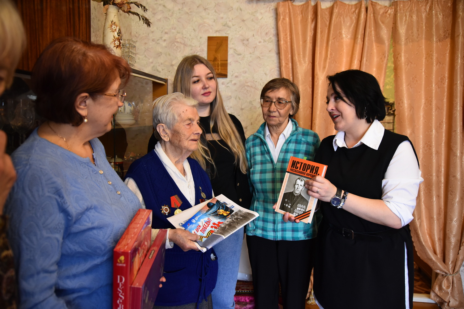 Делегация в составе представителей Совета ветеранов, профсоюзного комитета и пресс-службы АО «Златмаш» посетила Раису Семёновну, чтобы лично поздравить с наступающим праздником и вручить памятный экземпляр книги. Почему это так важно? Дело в том, что именно в этом томе «Истории, рассказанной народом» опубликована статья про нашу уважаемую Раису Семёновну.